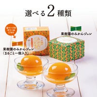 果樹園のみかんジュレは2種類。有田みかん果汁を70%も使った、天然素材である寒天とこんにゃくの粉で固めたゼリーと、その中にみかんまるごと1つ入ったおしゃれなサプライズゼリーです。