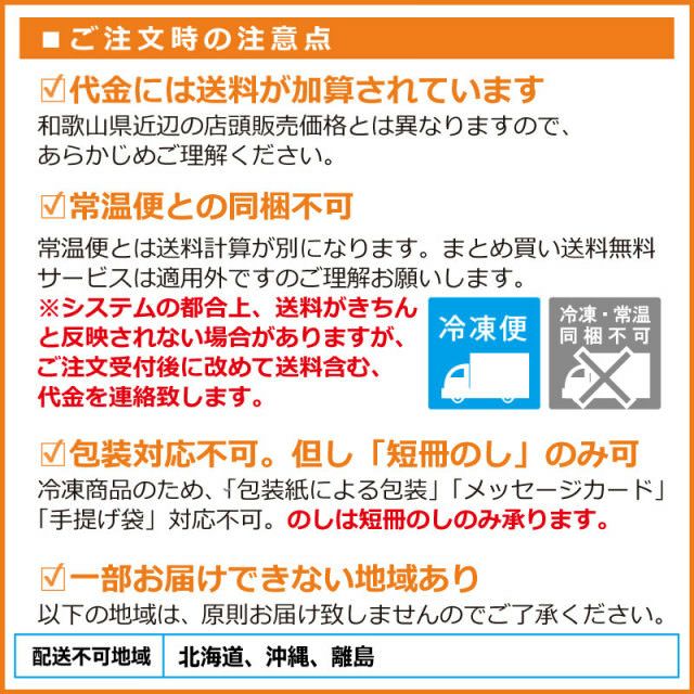 ただし「短冊のし」のみ可 - 冷凍商品のため、「包装紙による包装」「メッセージカード」「手提げ袋」対応不可。のしは短冊のしのみ承ります。