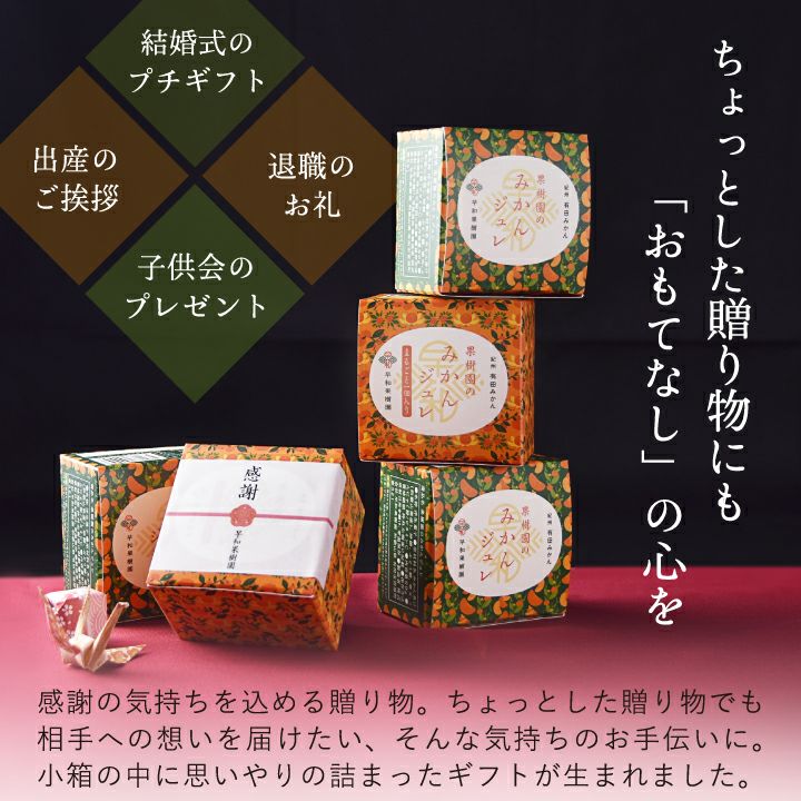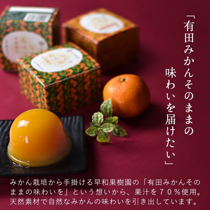 「みかんそのままの味」にこだわり、有田みかん果汁をふんだんに使用した濃厚なゼリーはみかんの生産から手掛ける早和果樹園ならではの商品です。