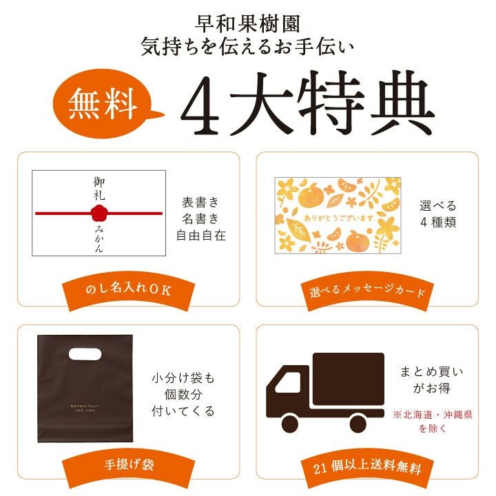 みかんゼリーをお探しなら、有田みかん果汁をふんだんに使った早和果樹園のみかんゼリーがおすすめ。用途などに合わせて3種類のゼリーをご用意しています。自分へのご褒美だけでなくプレゼントにご利用ください。