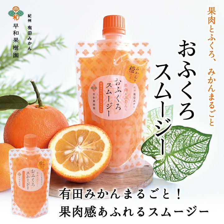 おふくろスムージーに使用しているみかんは、和歌山県産有田みかんのみ。有田みかんの濃厚な味わいと果肉から生み出される食感がたまらないスムージーに仕上がりました。素材の味わいを余すことなく引き出しました。