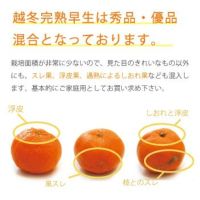こちらのページでは、「越冬完熟早生」といって、ビニールハウスの施設を使って、秋口に屋根だけにビニールをかけて、越冬(年越し)させたみかんを扱っております。雨水が入っていないので、高品質なまま、雨水による劣化を抑えています。これによって、理想的な完熟みかんに育て上げました