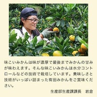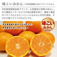 早和果樹園最高級のみかんブランド。生産園地や実際の味わい、また糖度センサー(光センサー)などでの抽出検査を経て、糖度と酸度のバランスのとれたハイレベルなみかんを特別選抜。その年の選りすぐりのみかんが「味こいみかん」として認定します。味が濃く、味に恋するほど喜んで頂けるようなみかんになればと願っています。