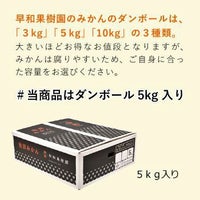 ダンボールセットは3kg入り、5kg入り、10kg入りの3種類をご用意しています。大きいほどお得なお値段となりますが、みかんは腐りやすいため、ご自身に合った容量をお選びください。
