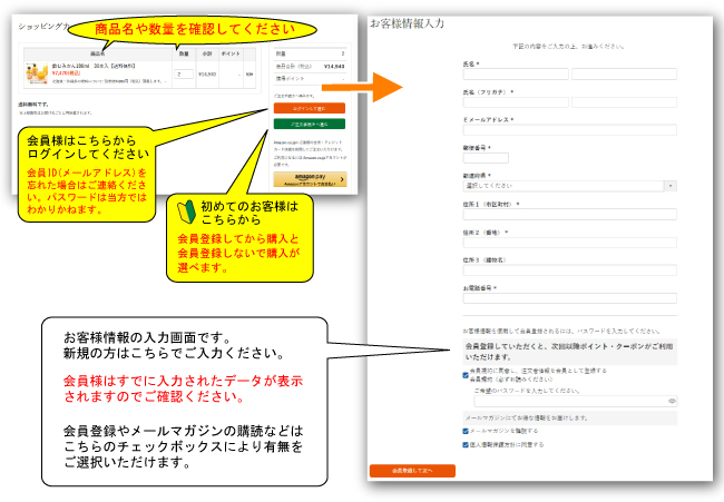 ■会員登録しないけどご購入されるお客さま
