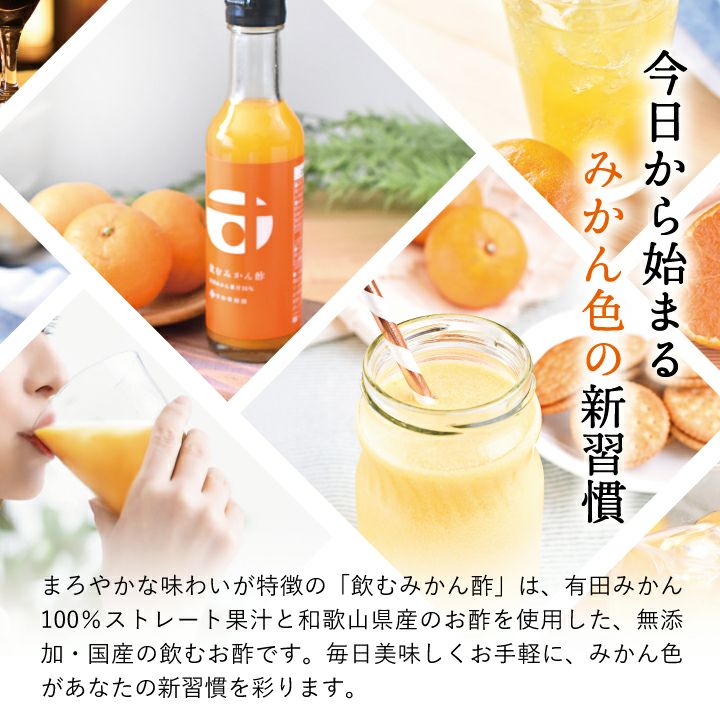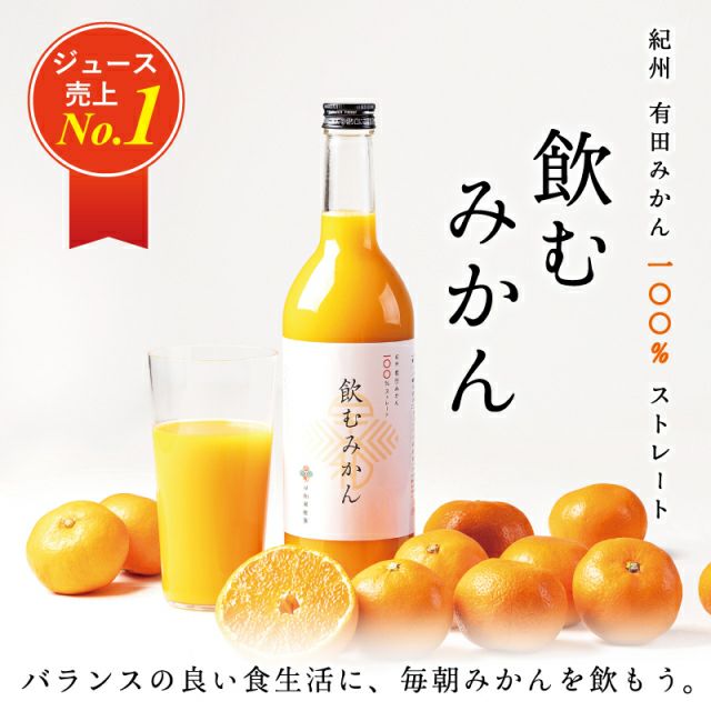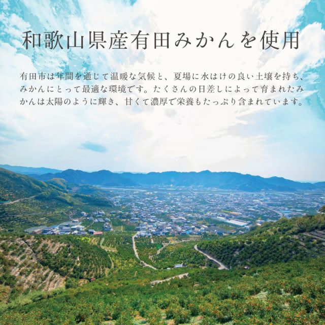 有田みかんストレートジュース飲むみかんは、旬の時期に収穫した有田みかんを絞った無添加のみかんジュースです。 あっさりしながらもとろりとした食感で、みかんをそのまま食べているような味わいに仕上げました