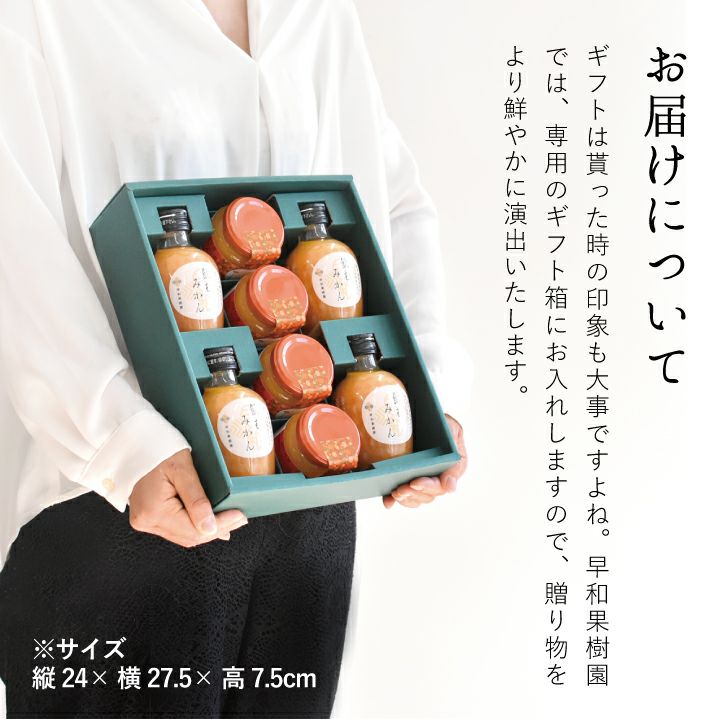 【早和果樹園】糖度12度以上を誇る高級有田みかん100%ジュース「味こいしぼり」180ml×2本と、91%果汁使用の濃厚みかんゼリー「果樹園の濃厚みかんジュレ」120g×2個入りかわいい小箱ギフト。プレゼントやプチギフトにおすすめ。