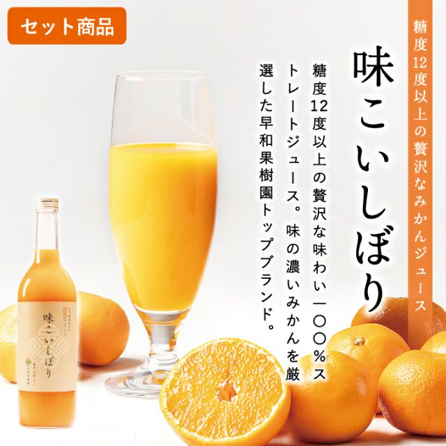【早和果樹園】糖度12度以上を誇る有田みかん100%ジュース「味こいしぼり」720ml×5本入りギフトです。早和果樹園のトップブランド、味こいしぼりの味わいは贈り物にも最適です。