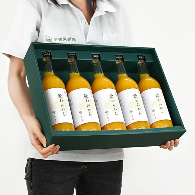 【飲むみかん5本ギフト】早和果樹園で人気No.1のみかんジュース「飲むみかん」の5本ギフト。和歌山有田でとれた、有田みかんのみを搾ったみかんジュースはまるでみかんをそのまま食べているかのうような味わいです。ぜひ、お贈り物にご利用下さい。