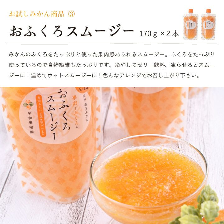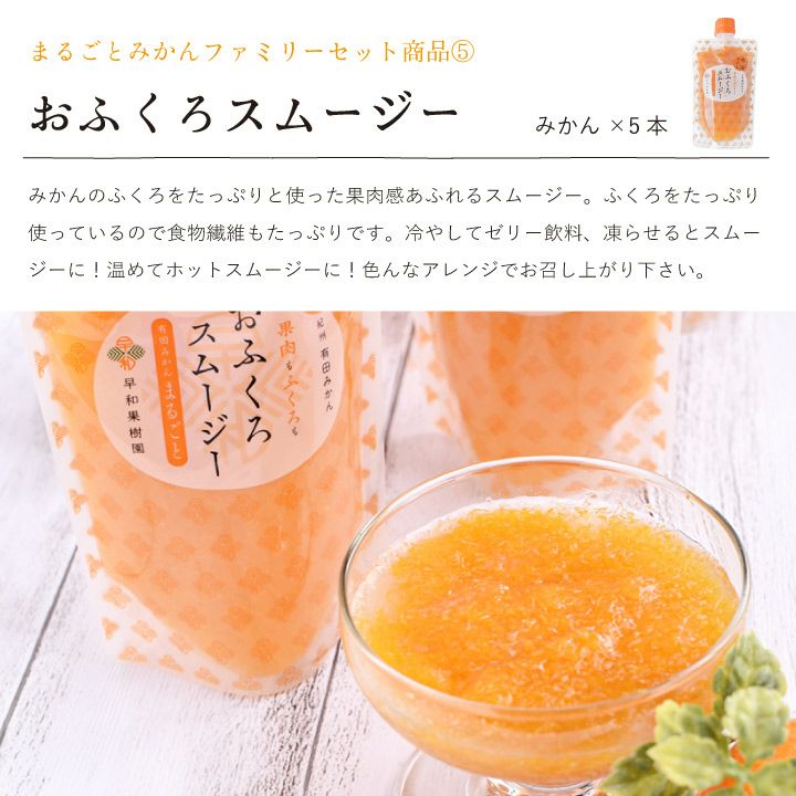 有田みかんを使用した飲むゼリー「おふくろスムージー」はみかんの果肉入りゼリー飲料です。こんにゃく粉を使用した飲むゼリーは冷凍してシューベットにして食べるのもおすすめ!この夏おすすめのみかんスイーツです。