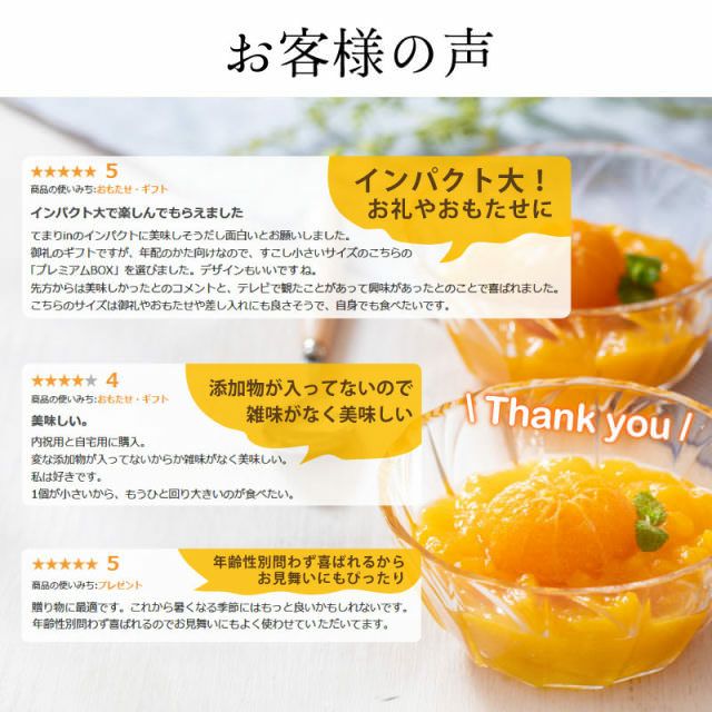 かわいい小箱濃厚みかんジュレまるごと入×6個有田みかん果汁を91%使用した濃厚なみかんゼリーの中にまるごとみかんが1つ入ったプレミアムゼリー。内祝・お供え・ゴルフの景品等々、幅広くお手軽にお使い頂けるギフトです。