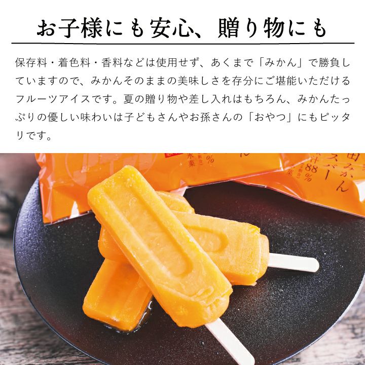 他の画像を見る みかんアイスバー 10本入り (N) 【送料込】 もっちり食感 包装不可 短冊のし 紙袋不可 冷凍便 予約商品 こちらは予約商品です ¥ 4,280 税込 "みかんストレート果汁88%でつくられた贅沢アイス! みかんストレート果汁をたっぷり使用した氷菓です。 みかん本来の健やかな味と、スウィーツとしての美味しさ、その両方をあわせた有田みかんならではのアイスをご堪能下さい。" 商品ページへ 詳細を見る お気に入りに登録する